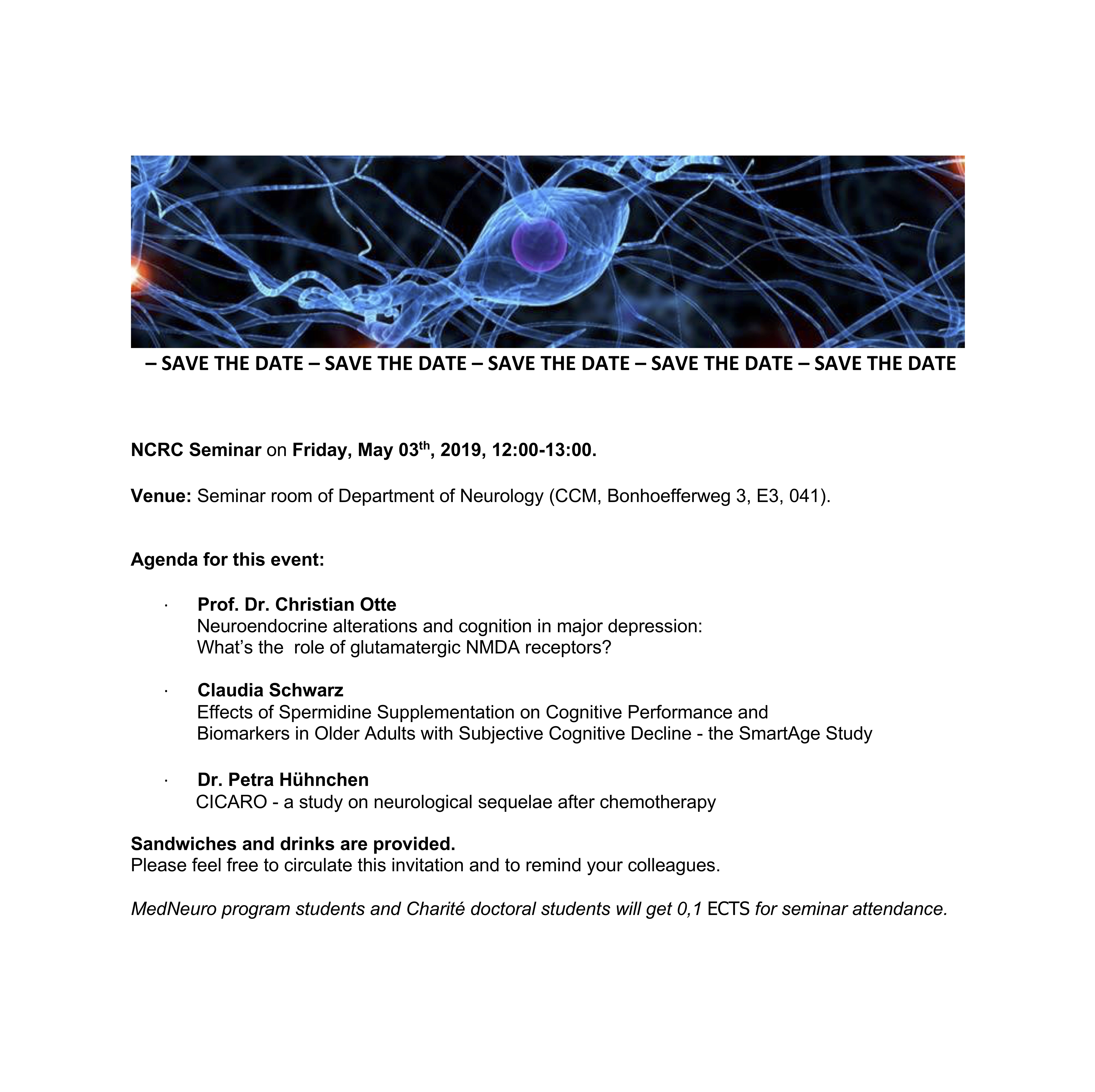 Location: Seminar room of Department of Neurology (CCM, Bonhoefferweg 3, E3, 041)