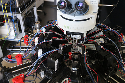 Experimental setup for multi-patch experiments that record the activity of up to ten neurons © Charité | Yangfan Peng
