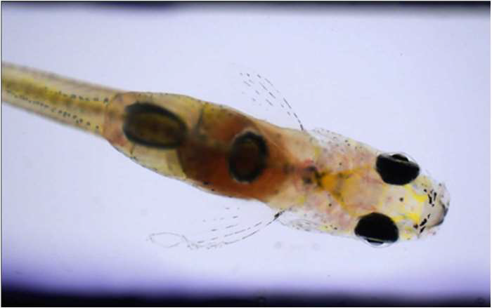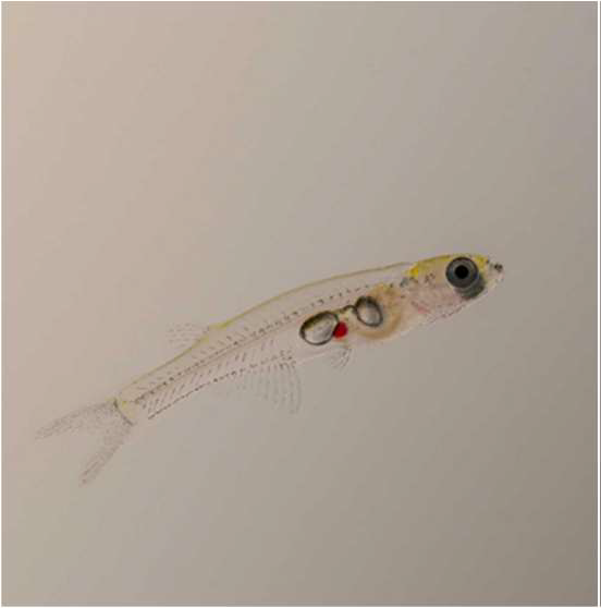 So transparent that even the second eye is visible through the head: Danionella cerebrum.